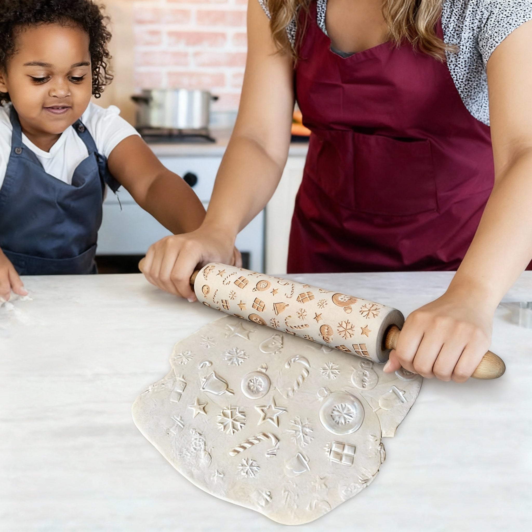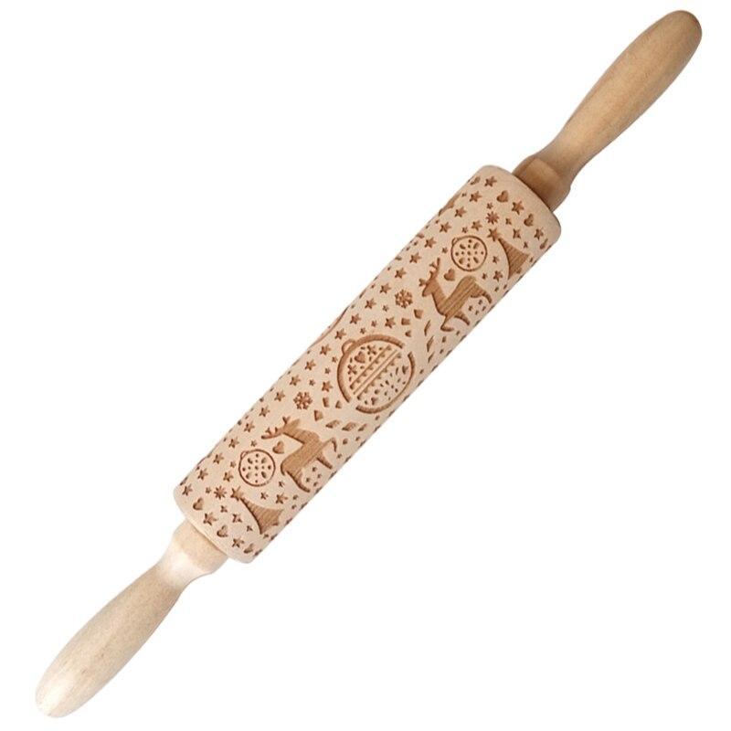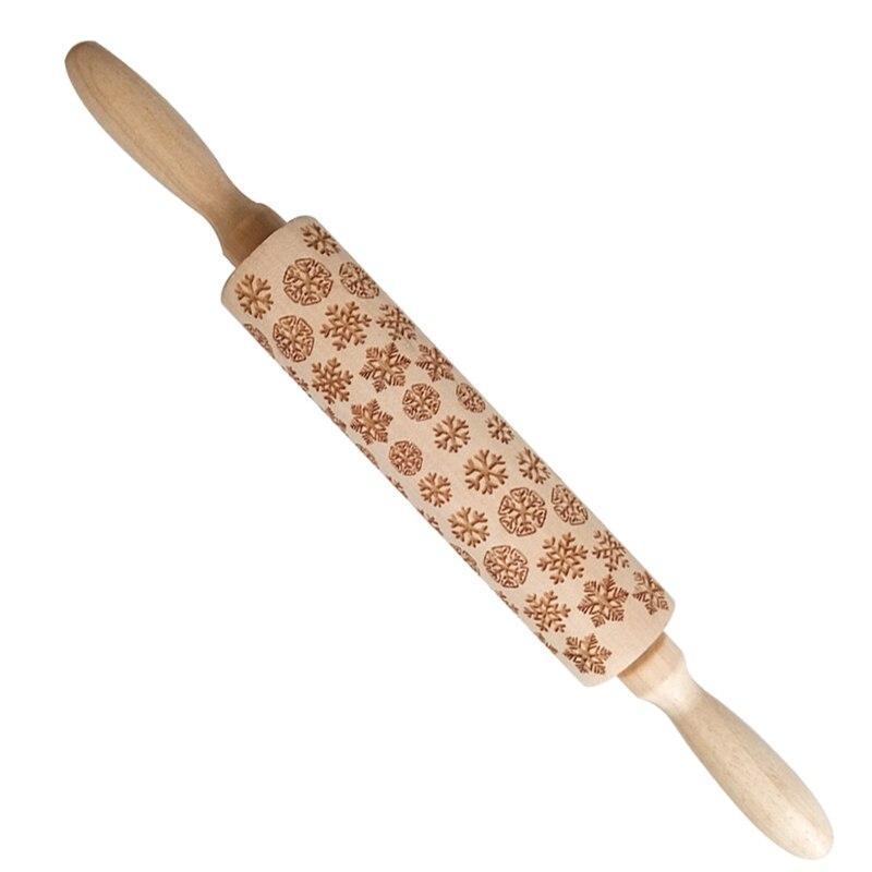 ✨ Bak magi på kjøkkenet! ✨ Gjør høytiden enda mer spesiell med denne treskjevlen med vakre julemønstre. Med ett rull tryller du frem unike figurer som stjerner, snøfnugg, gaver og sukkertøy i deigen din. Perfekt til småkaker, kaker, fondant eller til og med brøddeig.